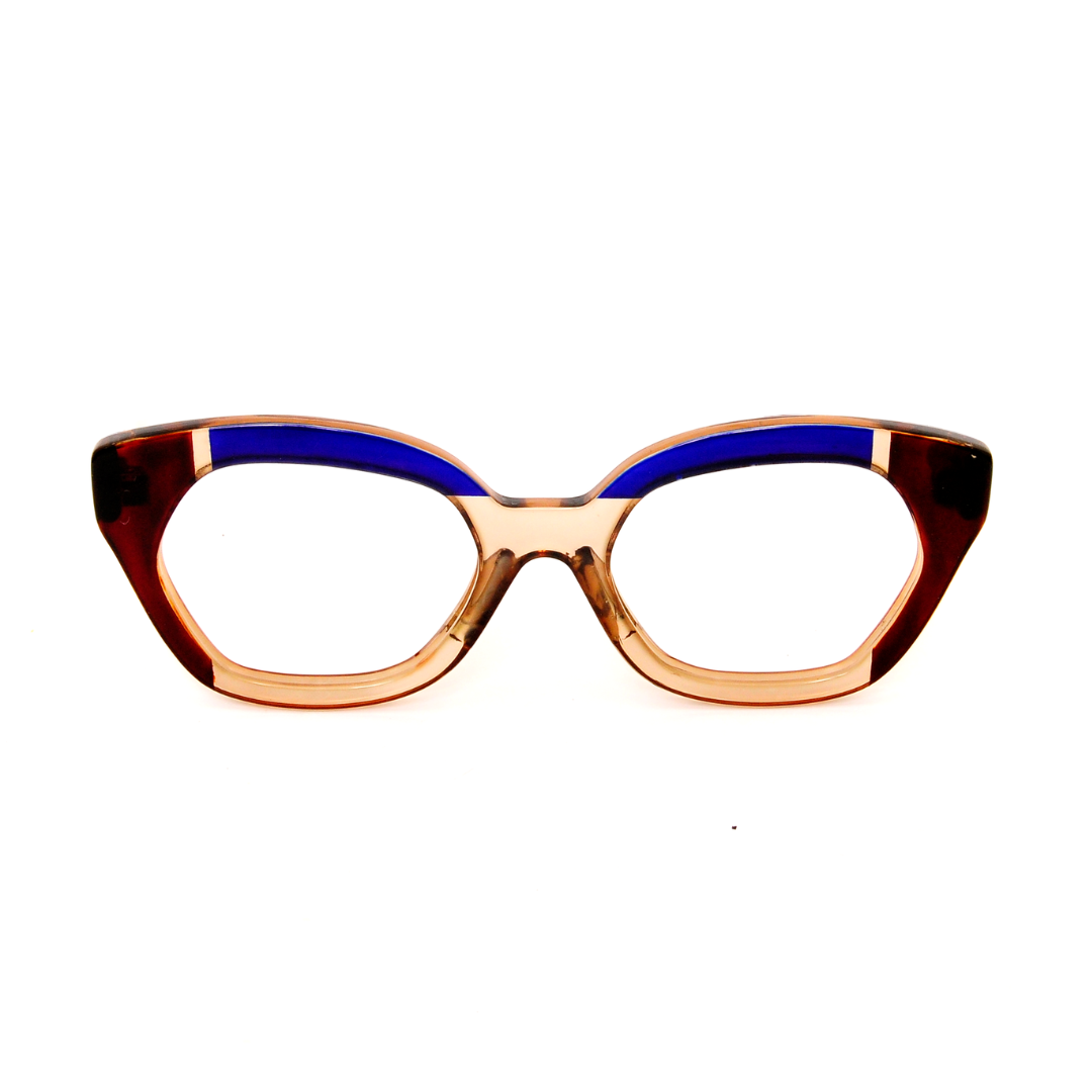 Óculos de Grau Gustavo Eyewear G70 2 Marrom, âmbar e azul. Hastes marrom. Black November