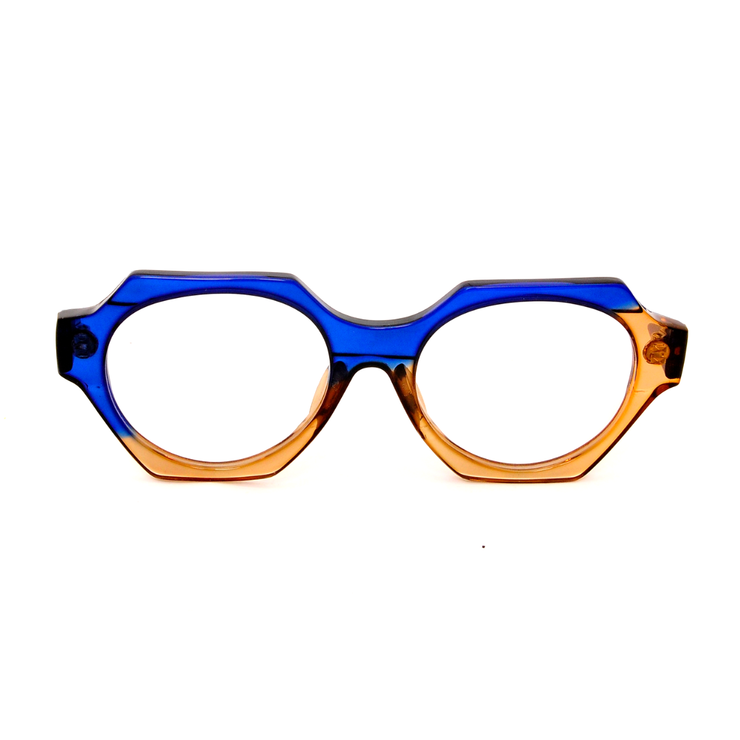 Óculos de Grau Gustavo Eyewear G72 2 Azul e âmbar. Hastes azuis.