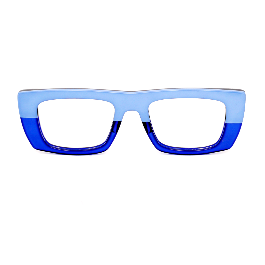 Óculos de Grau Gustavo Eyewear G80 1 em tons de azul e hastes pretas.