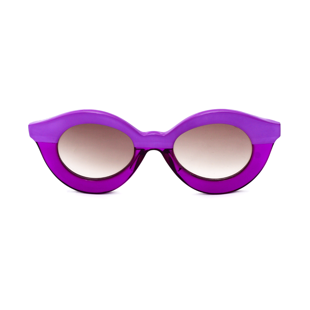 Óculos de Sol Gustavo Eyewear G10 1 na cor violeta e lentes cinza.