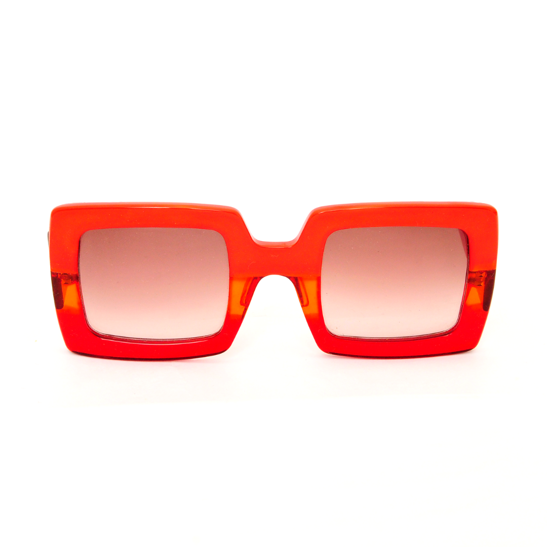 Óculos de Sol Gustavo Eyewear G01 7 Vermelho e laranja. Hastes vermelhas e lentes marrom. Black November.