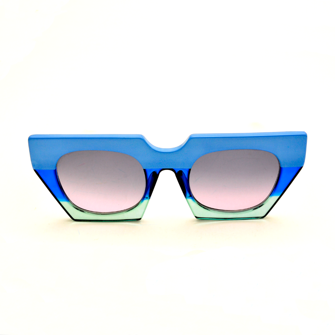Óculos de Sol Gustavo Eyewear G137 8 Azul e acqua. Hastes pretas e lentes cinza. Black November.
