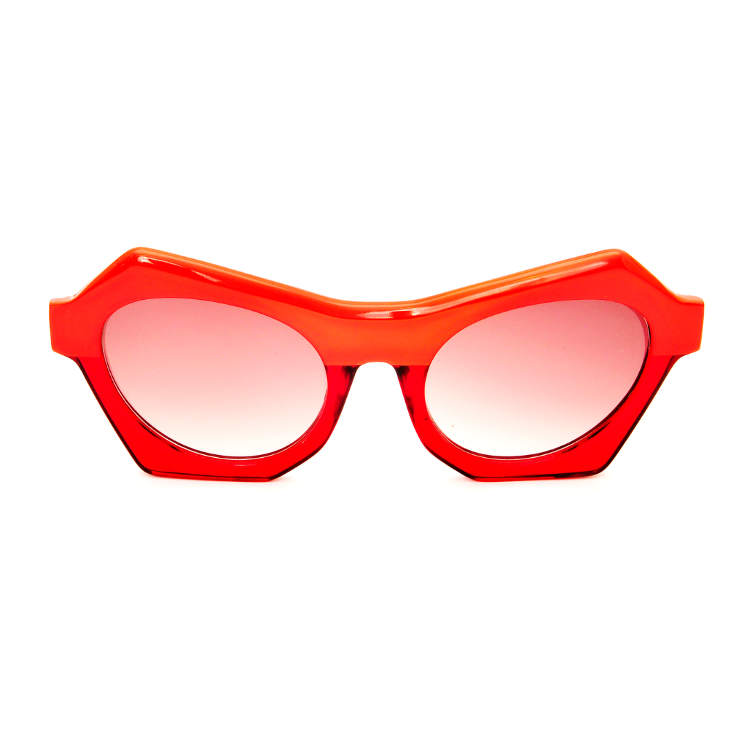 Óculos de Sol Gustavo Eyewear G138 2 vermelho, hastes Animal Print e lentes marrom degrade.