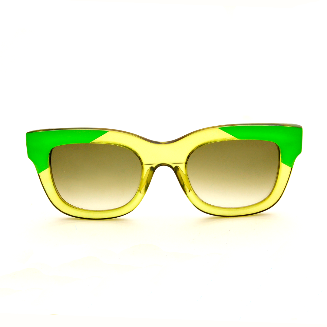 Óculos de Sol Gustavo Eyewear G58 5 Verde e âmbar. Hastes pretas e lentes marrom. Black November.